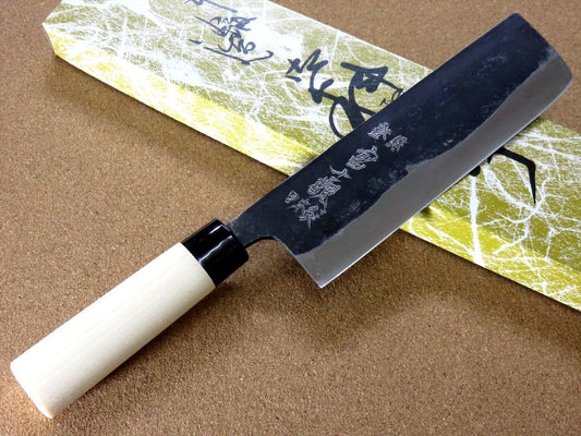 Japanese Kitchen Nakiri Vegetable Knife 7.1 inch Kuro-Uchi Blue Steel #2 JAPAN
