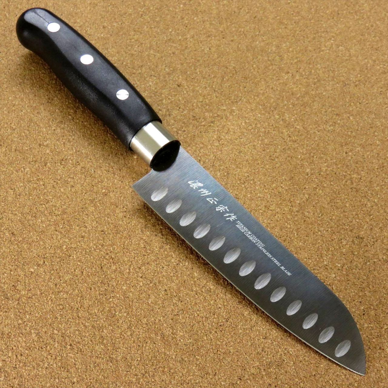 Japanese Masamune Kitchen Dimple Santoku Knife 5.9" Titanium Coating SEKI JAPAN